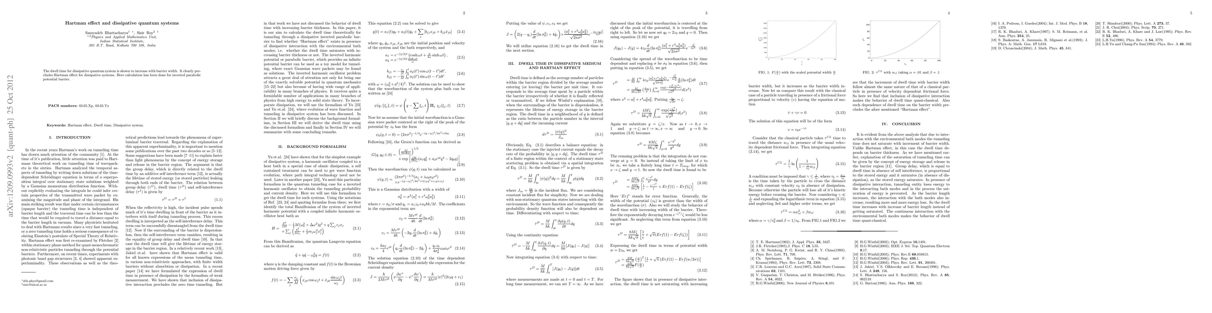 The study finds that a wider barrier width increases dwell time in dissipative quantum systems, making the Hartman effect impossible for such systems. It focuses on inverted parabolic potential barriers with calculations to support this conclusion.