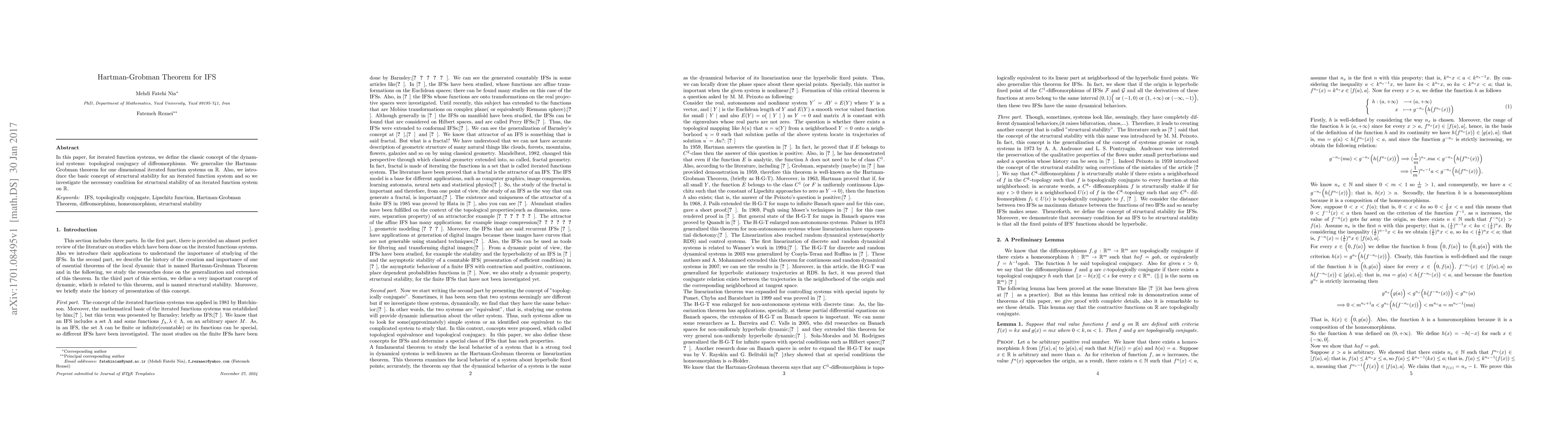This paper generalizes the Hartman-Grobman theorem for one-dimensional iterated function systems on R, defining topological conjugacy of diffeomorphisms and introducing structural stability concepts for such systems. It investigates the necessary conditions for the structural stability of these systems.