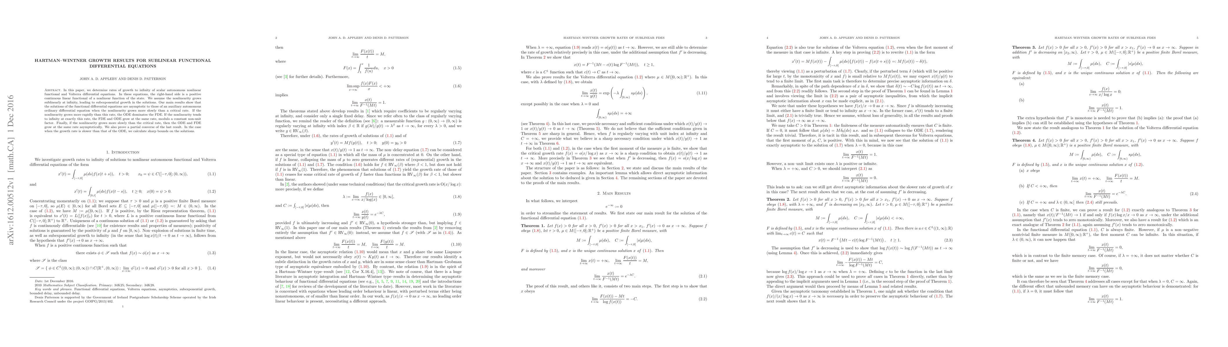 In this paper, we determine rates of growth to infinity of scalar autonomous nonlinear functional and Volterra differential equations. In these equations, the right-hand side is a positive continuous linear functional of a nonlinear function of the state. We assume the nonlinearity grows sublinearly at infinity, leading to subexponential growth in the solutions. Our main results show that the solutions of the functional differential equations are asymptotic to those of an auxiliary autonomous ordinary differential equation when the nonlinearity grows more slowly than a critical rate. If the nonlinearity grows more rapidly than this rate, the ODE dominates the FDE. If the nonlinearity tends to infinity at exactly this rate, the FDE and ODE grow at the same rate, modulo a constant non-unit factor. Finally, if the nonlinearity grows more slowly than the critical rate, then the ODE and FDE grow at the same rate asymptotically. We also prove a partial converse of the last result. In the case when the growth rate is slower than that of the ODE, we calculate sharp bounds on the solutions.