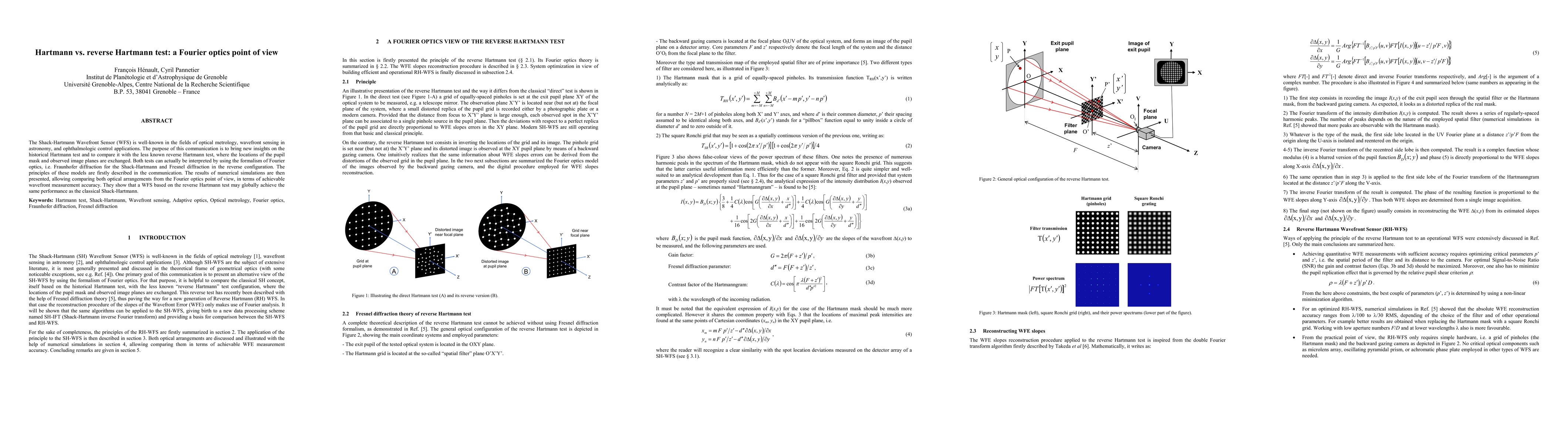 The Shack-Hartmann Wavefront Sensor (WFS) is well-known in the fields of optical metrology, wavefront sensing in astronomy, and ophthalmologic control applications. The purpose of this communication is to bring new insights on the historical Hartmann test and to compare it with the less known reverse Hartmann test, where the locations of the pupil mask and observed image planes are exchanged. Both tests can actually be interpreted by using the formalism of Fourier optics, i.e. Fraunhofer diffraction for the Shack-Hartmann and Fresnel diffraction in the reverse configuration. The principles of these models are firstly described in the communication. The results of numerical simulations are then presented, allowing comparing both optical arrangements from the Fourier optics point of view, in terms of achievable wavefront measurement accuracy. They show that a WFS based on the reverse Hartmann test may globally achieve the same performance as the classical Shack-Hartmann