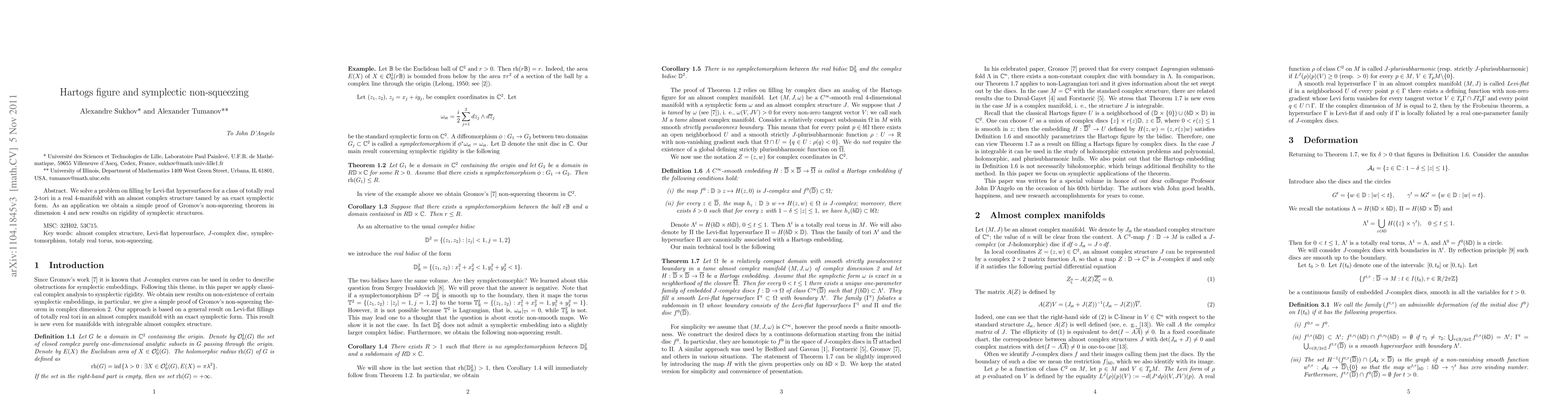 This research paper solves a problem related to filling by Levi-flat hypersurfaces for specific totally real 2-tori in a 4-dimensional almost complex manifold. It uses an exact symplectic form taming. The solution yields a straightforward proof of Gromov's non-squeezing theorem in dimension 4 and introduces new insights into symplectic structure rigidity.
