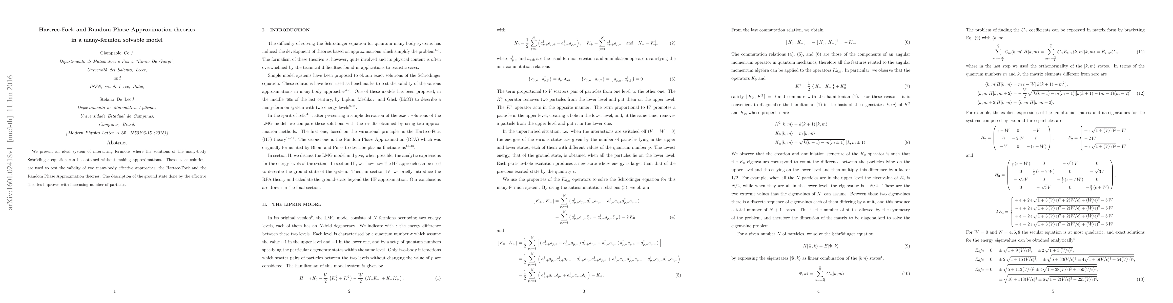 We present an ideal system of interacting fermions where the solutions of the many-body Schroedinger equation can be obtained without making approximations. These exact solutions are used to test the validity of two many-body effective approaches, the Hartree-Fock and the Random Phase Approximation theories. The description of the ground state done by the effective theories improves with increasing number of particles.