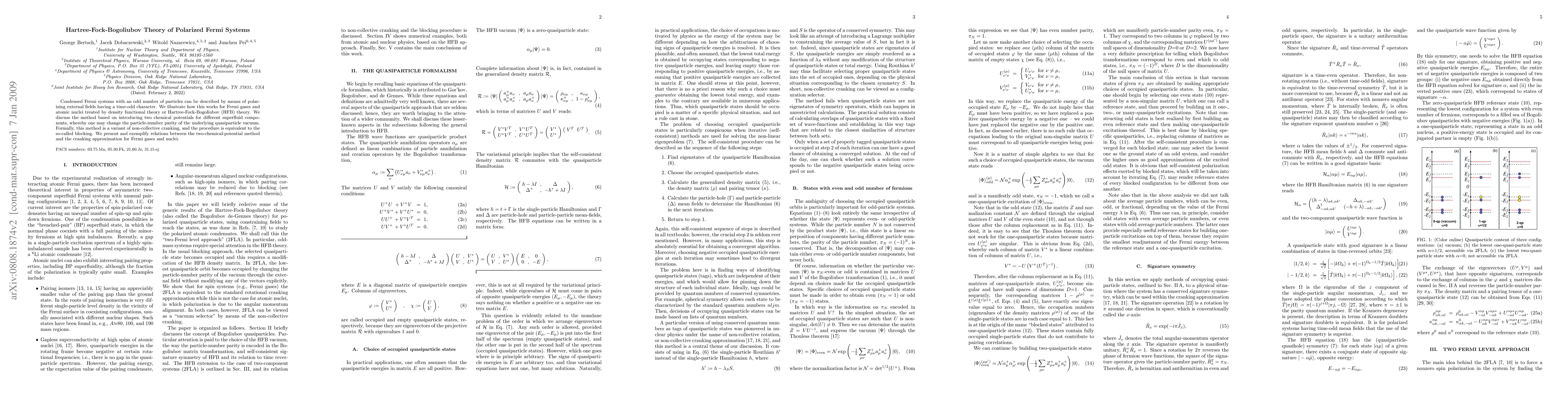This paper explores the application of Hartree-Fock-Bogoliubov (HFB) theory to polarized Fermi systems, using external time-odd fields to describe condensed Fermi systems with odd particle numbers. It demonstrates the method's equivalence to non-collective cranking and blocking, illustrating its application to both Fermi gases and atomic nuclei.