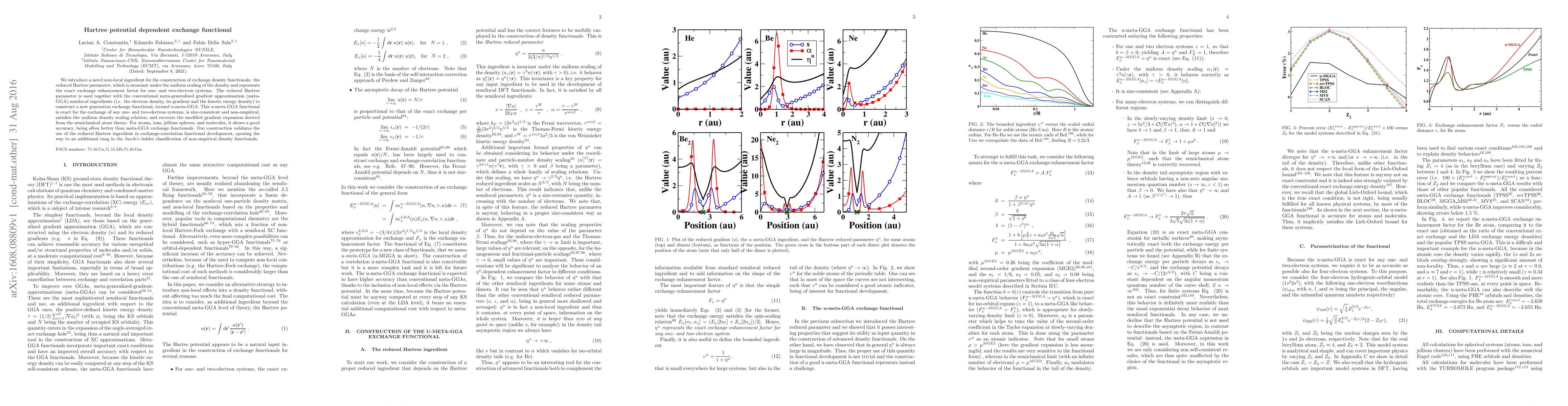 This paper introduces a new non-local exchange functional, u-meta-GGA, incorporating the reduced Hartree parameter, which is exact for one- and two-electron systems and improves upon conventional meta-GGA exchange functionals in accuracy for various atomic and molecular systems.