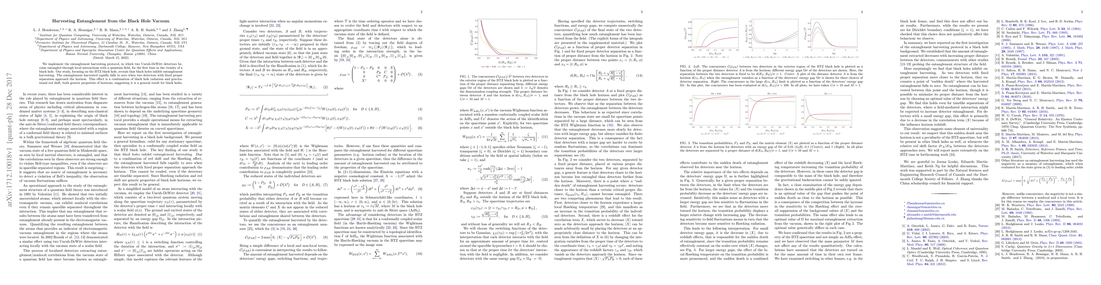 The paper presents a detailed analysis of entanglement harvesting near a BTZ black hole, including the derivation of the concurrence as an entanglement measure and numerical computation of entanglement for detectors at various distances and energy gaps.