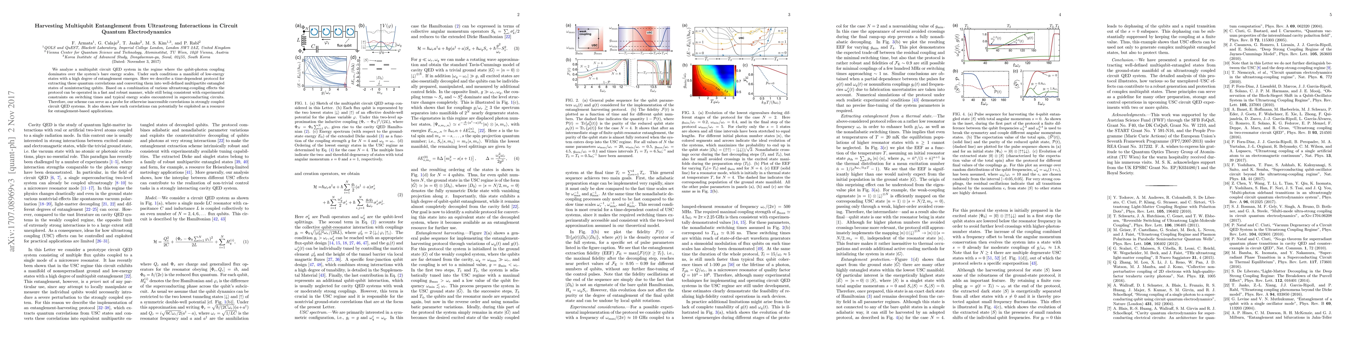 We analyze a multiqubit circuit QED system in the regime where the qubit-photon coupling dominates over the system's bare energy scales. Under such conditions a manifold of low-energy states with a high degree of entanglement emerges. Here we describe a time-dependent protocol for extracting these quantum correlations and converting them into well-defined multipartite entangled states of noninteracting qubits. Based on a combination of various ultrastrong-coupling effects, the protocol can be operated in a fast and robust manner, while still being consistent with experimental constraints on switching times and typical energy scales encountered in superconducting circuits. Therefore, our scheme can serve as a probe for otherwise inaccessible correlations in strongly coupled circuit QED systems. It also shows how such correlations can potentially be exploited as a resource for entanglement-based applications.