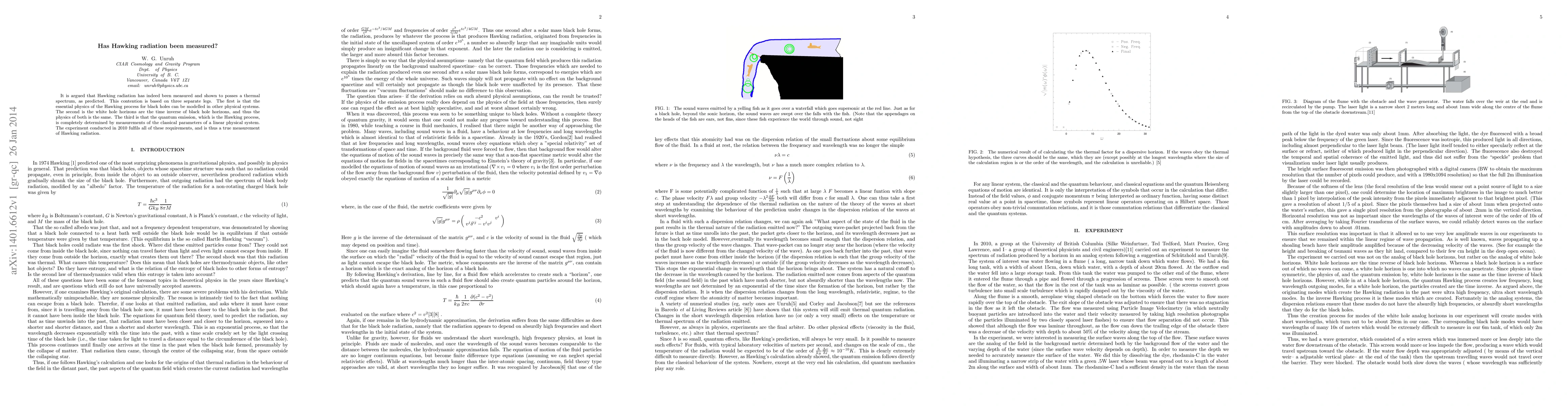 It is argued that Hawking radiation has indeed been measured and shown to posses a thermal spectrum, as predicted. This contention is based on three separate legs. The first is that the essential physics of the Hawking process for black holes can be modelled in other physical systems. The second is the white hole horizons are the time inverse of black hole horizons, and thus the physics of both is the same. The third is that the quantum emission, which is the Hawking process, is completely determined by measurements of the classical parameters of a linear physical system. The experiment conducted in 2010 fulfills all of these requirements, and is thus a true measurement of Hawking radiation.