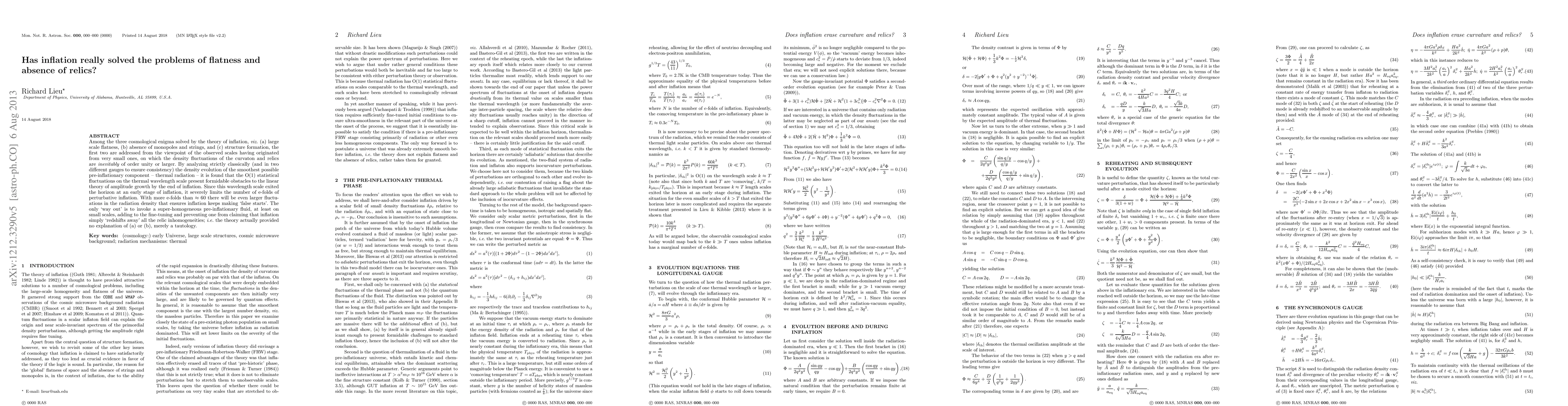Among the three cosmological enigma solved by the theory of inflation, {\it viz.} (a) large scale flatness, (b) absence of monopoles and strings, and (c) structure formation, the first two are addressed from the viewpoint of the observed scales having originated from very small ones, on which the density fluctuations of the curvaton and relics are {\it inevitably} of order unity or larger. By analyzing strictly classically (and in two different gauges to ensure consistency) the density evolution of the smoothest possible pre-inflationary component -- thermal radiation -- it is found that the O(1) statistical fluctuations on the thermal wavelength scale present formidable obstacles to the linear theory of amplitude growth by the end of inflation. Since this wavelength scale exited the horizon at an early stage of inflation, it severely limits the number of e-folds of perturbative inflation. With more e-folds than $\approx 60$ there will be even larger fluctuations in the radiation density that ensures inflation keeps making `false starts'. The only `way out' is to invoke a super-homogeneous pre-inflationary fluid, at least on small scales, adding to the fine-tuning and preventing one from claiming that inflation simply `redshifts away' all the relic inhomogeneities; {\it i.e} the theory actually provided no explanation of (a) or (b), merely a tautology.