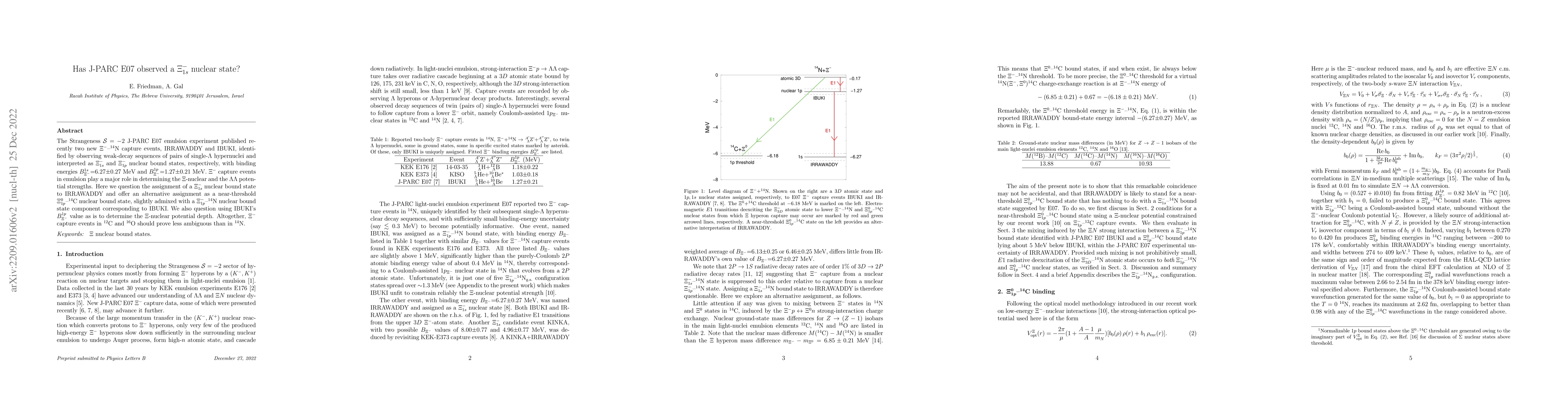 The J-PARC E07 experiment reported two new $\Xi^-$--$^{14}$N capture events interpreted as $\Xi^{-}_{1s}$ and $\Xi^{-}_{1p}$ nuclear bound states, but the paper questions the assignment of IRRAWADDY as $\Xi^{-}_{1s}$ and suggests it may instead be a near-threshold $\Xi^0_{1p}$--$^{14}$C state. The study also challenges the use of IBUKI's binding energy to determine the $\Xi$-nuclear potential.