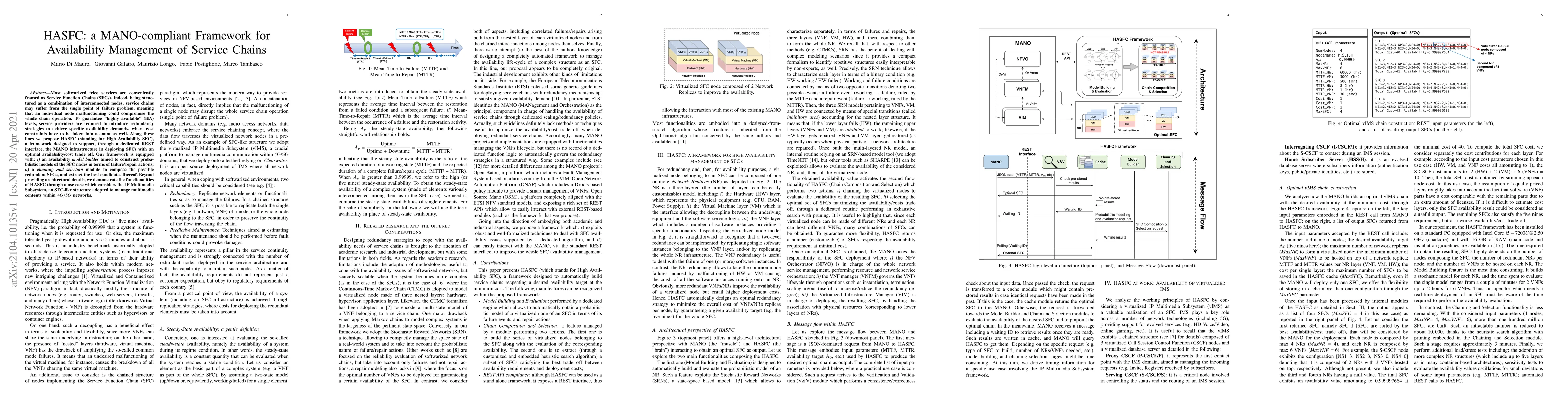 This research paper proposes HASFC, a framework to manage Service Function Chains for high availability while minimizing cost, using a probabilistic model and modular selection process.