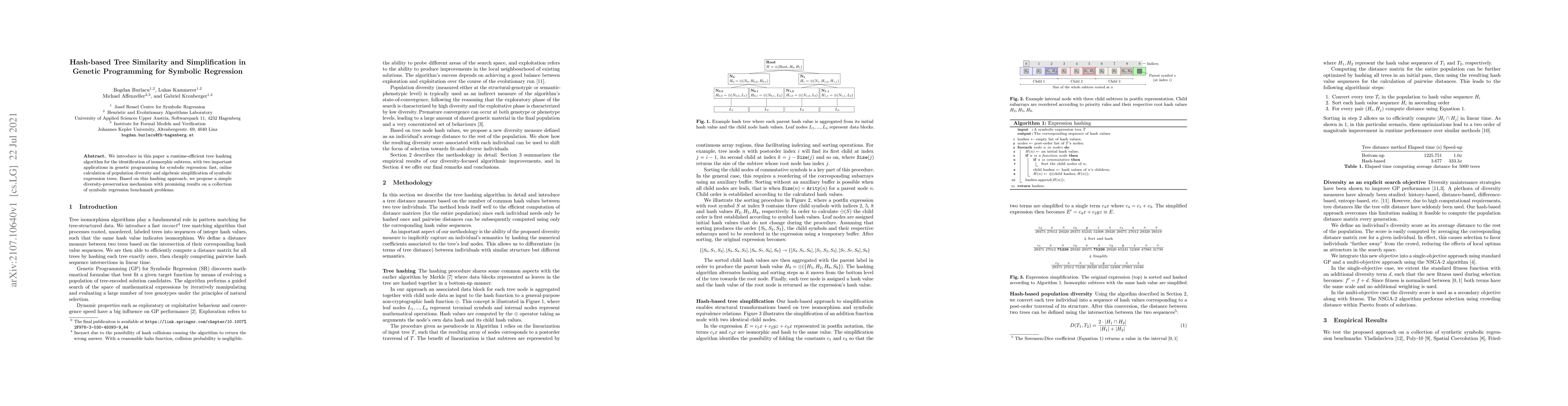 This paper presents a runtime-efficient tree hashing algorithm for identifying isomorphic subtrees, enabling fast online calculation of population diversity and algebraic simplification in genetic programming for symbolic regression. The proposed hash-based approach also introduces a diversity-preservation mechanism that shows promising results on symbolic regression benchmarks.