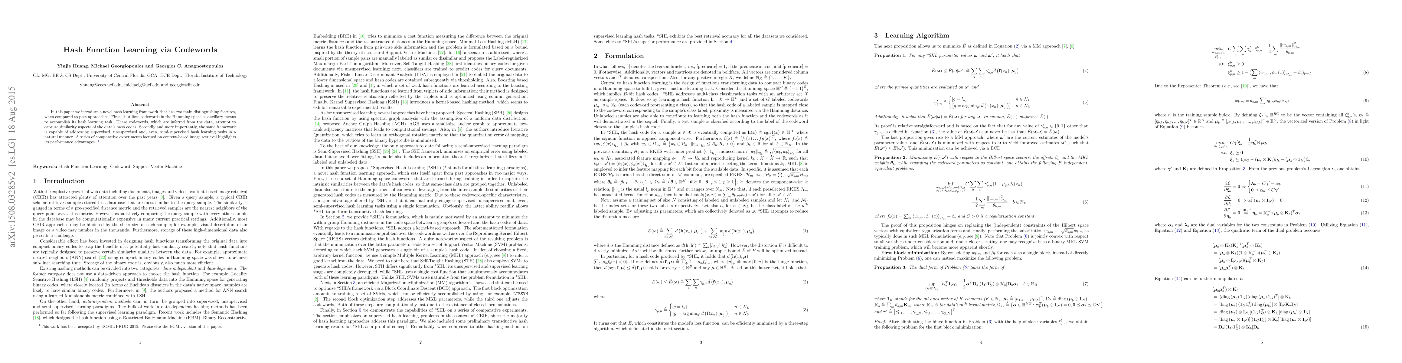 This paper presents a novel hash learning framework that leverages codewords in Hamming space to capture data similarity and can handle supervised, unsupervised, and semi-supervised learning tasks. Comparative experiments in content-based image retrieval demonstrate its performance benefits.