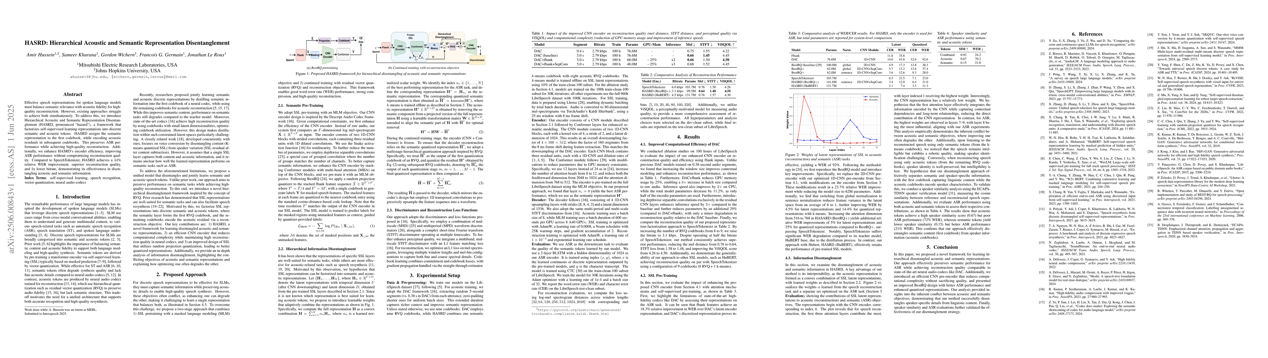 The research paper introduces HASRD, a framework that disentangles acoustic and semantic information in speech representations to achieve high-quality reconstruction while maintaining ASR performance. It achieves significant improvements over existing approaches, including 44% relative WER reduction and improved efficiency.