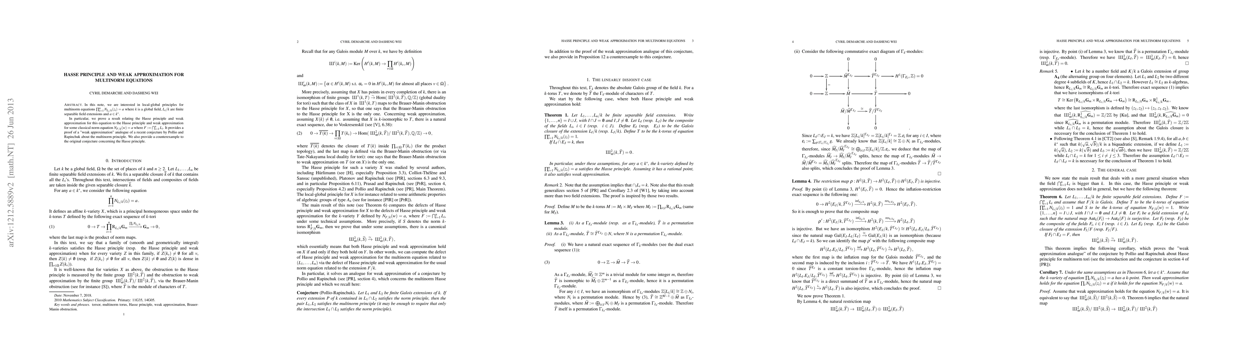 In this note, we are interested in local-global principles for multinorm equations of the form $\prod_{i=1}^n N_{L_i /k}(z_i) = a$ where $k$ is a global field, $L_i/k$ are finite separable field extensions and $a \in k^*$. In particular, we prove a result relating weak approximation for this equation to weak approximation for some classical norm equation $N_{F/k}(w) = a$ where $F := \bigcap_{i=1}^n L_i$. It provides a proof of a "weak approximation" analogue of a recent conjecture by Pollio and Rapinchuk about multinorm principle. We also provide a counterexample to the original conjecture concerning Hasse principle.