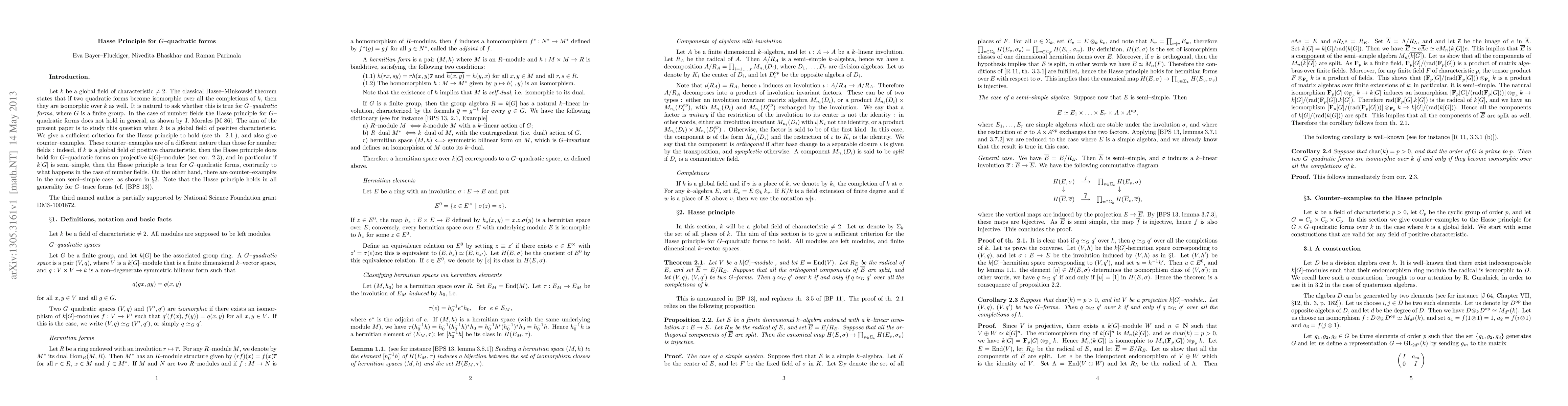 The paper investigates whether the Hasse principle holds for G-quadratic forms in global fields of positive characteristic, providing a sufficient criterion for its validity and presenting counterexamples distinct from those found in number fields.
