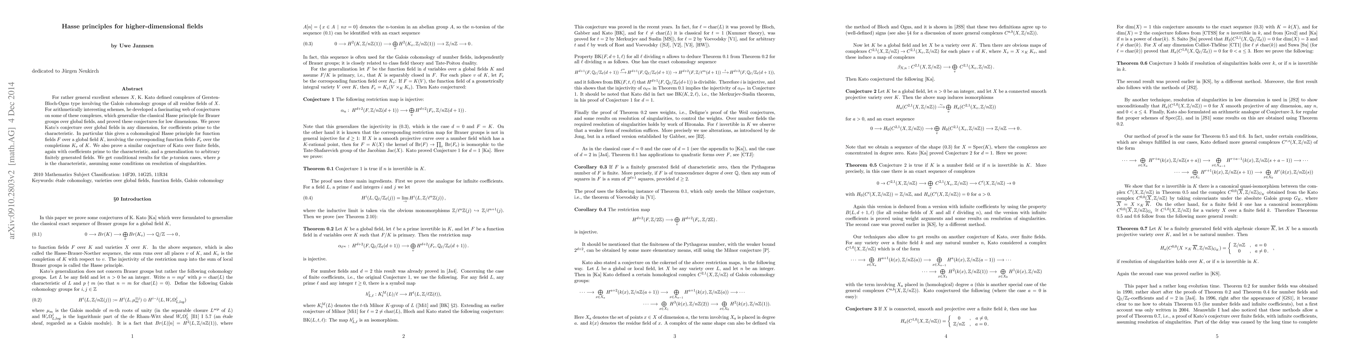 This paper proves K. Kato's conjectures on higher-dimensional fields, providing a Hasse principle for function fields over number fields and extending the results to global fields of positive characteristic. The findings also generalize Kato's conjecture for finite and finitely generated fields, assuming appropriate conditions.
