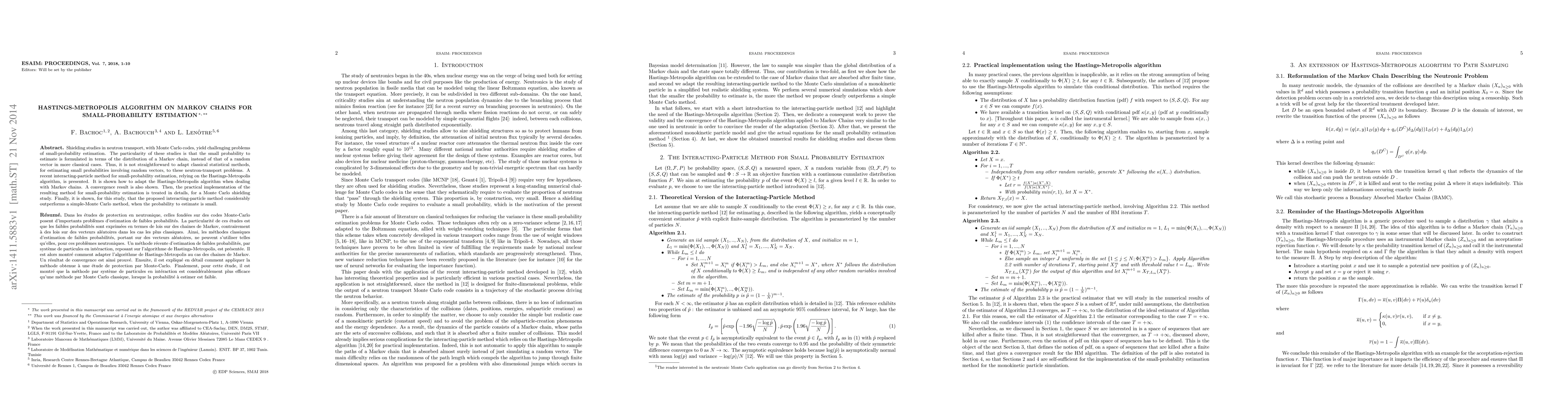 This paper presents an interacting-particle method based on the Hastings-Metropolis algorithm for estimating small probabilities in neutron transport shielding studies, specifically when these probabilities are formulated in terms of Markov chain distributions. The method outperforms simple Monte Carlo methods for small-probability scenarios.