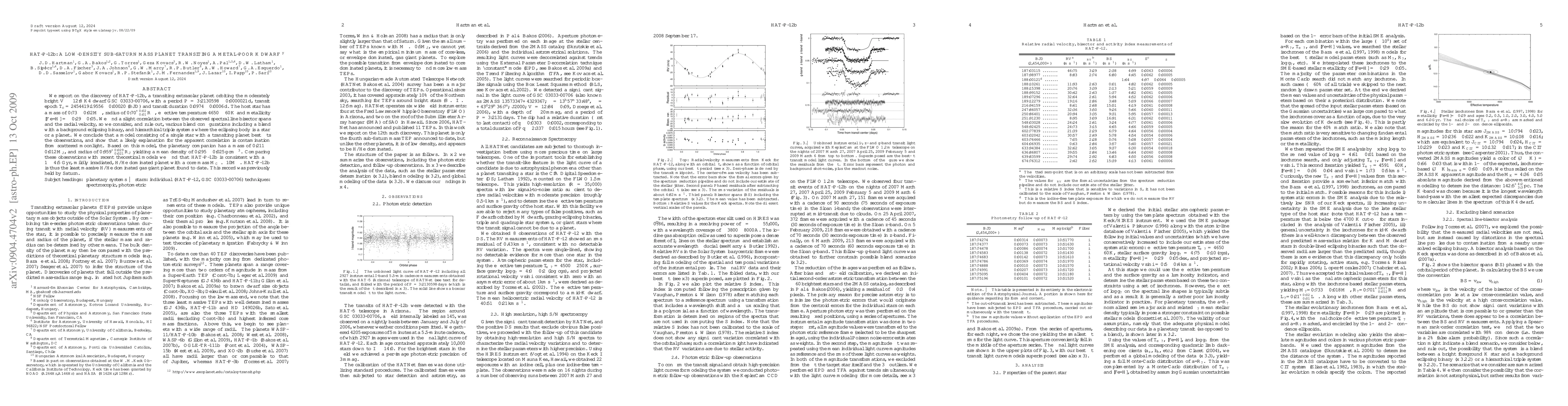 HAT-P-12b is a low-density, sub-Saturn mass planet transiting a metal-poor K dwarf star. It has a mean density of 0.295 g cm^-3, making it the least massive H/He dominated gas giant discovered to date, previously held by Saturn.