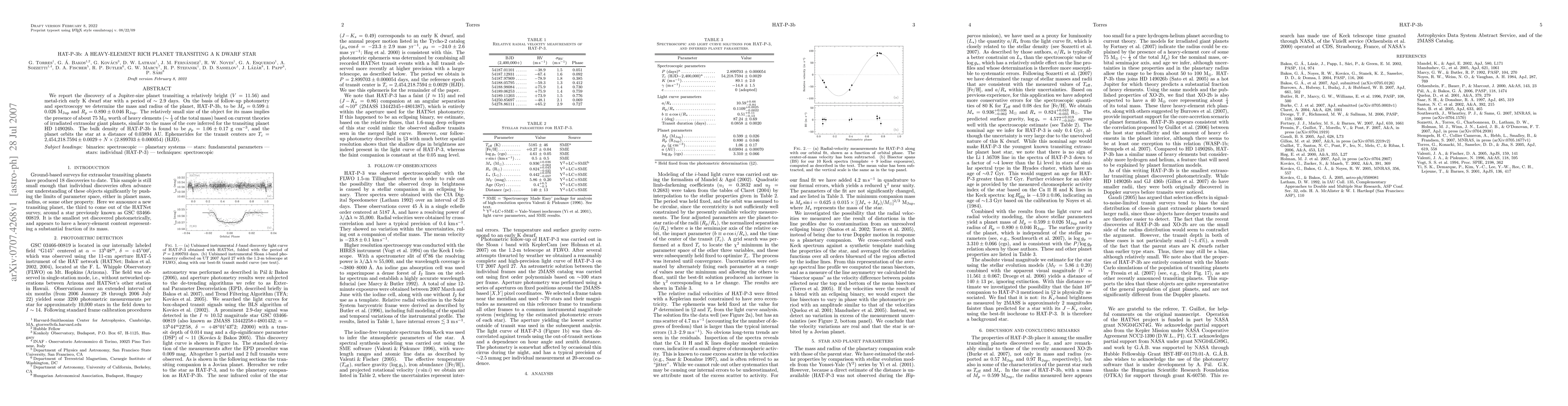 The research used a combination of spectroscopic and transit methods to discover and characterize the exoplanet HAT-P-3b.