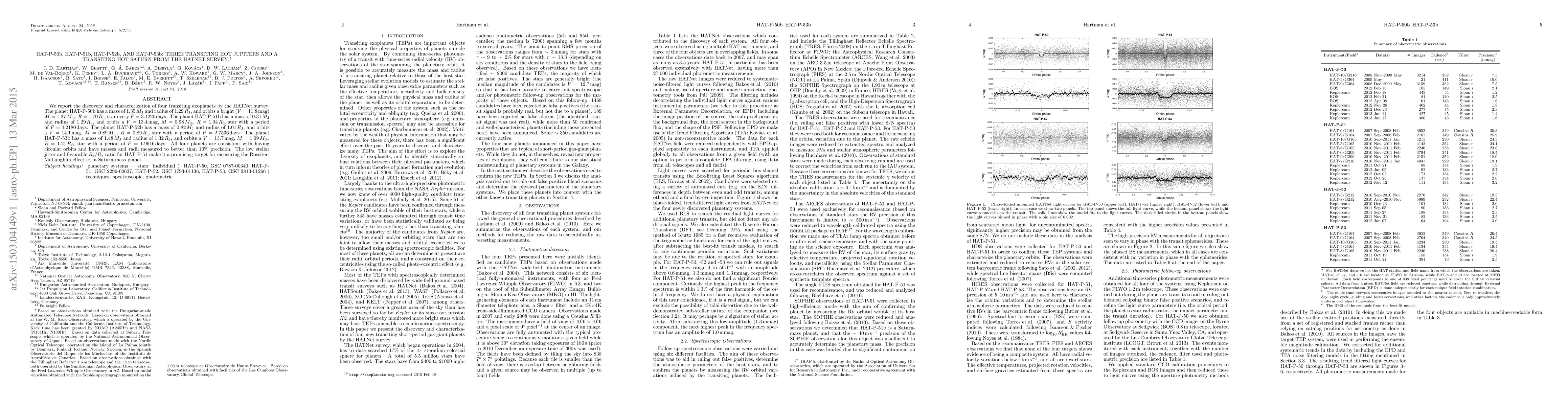 The HATNet survey discovered four transiting exoplanets: HAT-P-50b, HAT-P-51b, HAT-P-52b, and HAT-P-53b, characterized by precise mass and radius measurements, with HAT-P-51b being a promising target for studying the Rossiter-McLaughlin effect.
