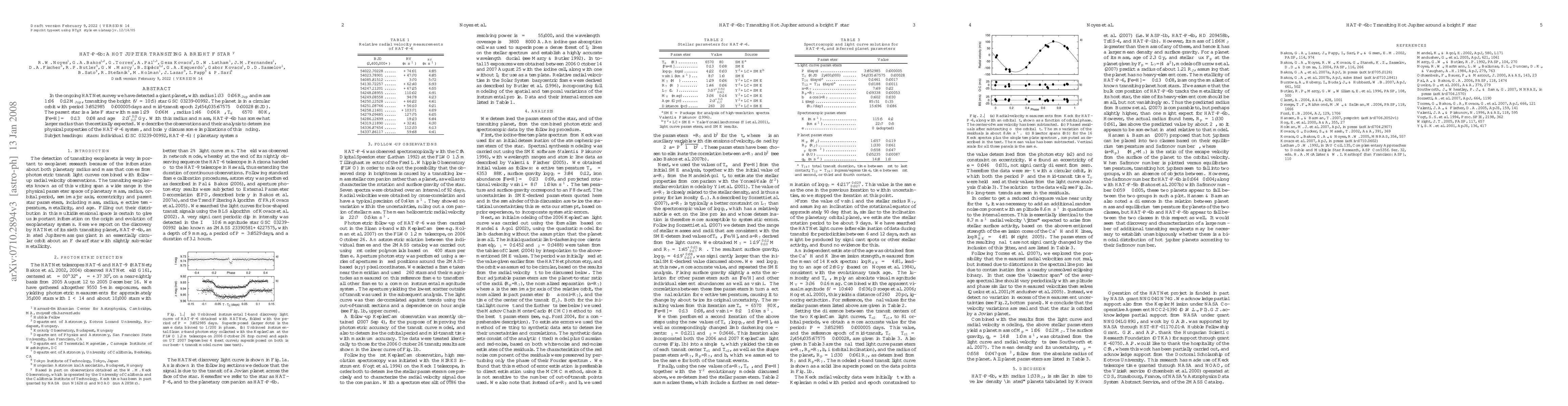 A giant planet named HAT-P-6b orbits a bright F star, with unexpected large radius, and is studied for physical properties.