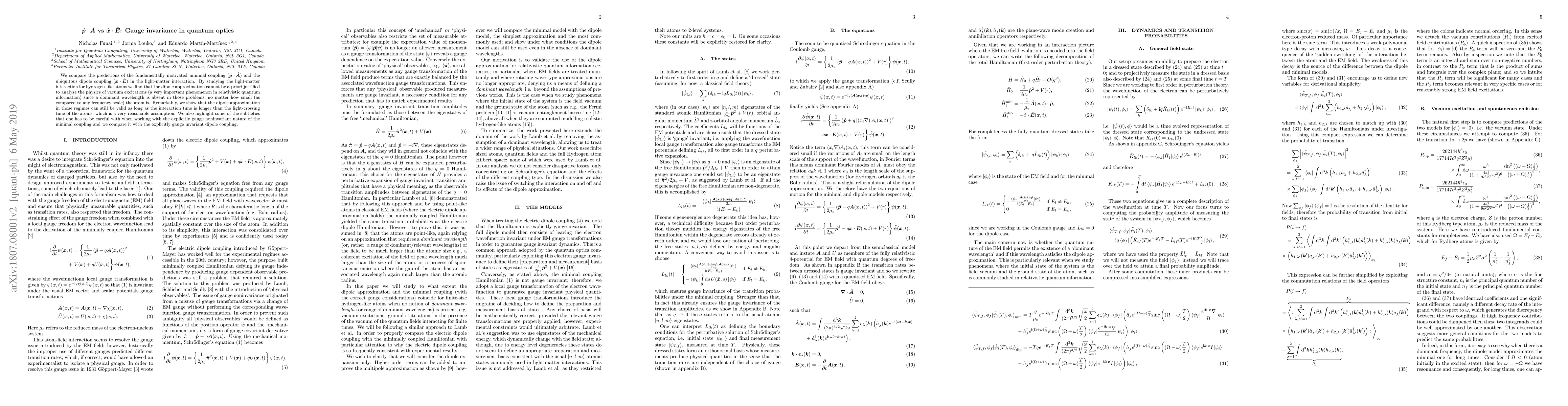 The paper compares two coupling methods in quantum optics: minimal coupling ($oldsymbol{p} oldsymbol{ imes} oldsymbol{A}$) and dipole coupling ($oldsymbol{x} oldsymbol{ imes} oldsymbol{E}$). It finds that the dipole approximation can be valid for analyzing vacuum excitations under certain conditions.