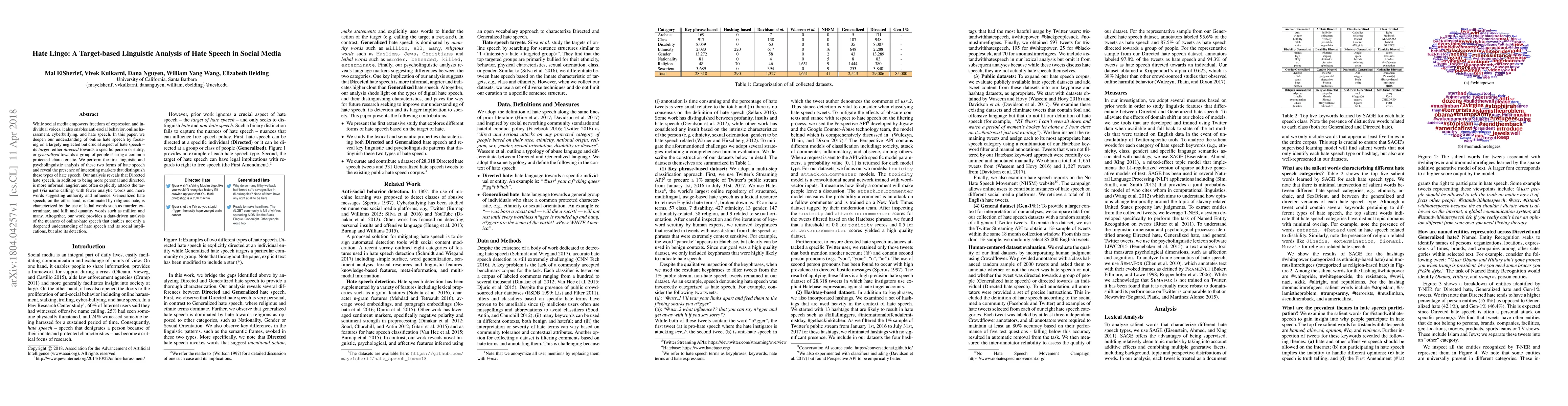 This paper conducts a linguistic analysis of targeted and generalized hate speech on social media, identifying distinct markers for each form. Directed hate speech is more personal, informal, and aggressive, while generalized hate speech often involves religious themes and lethal or quantity-related language.