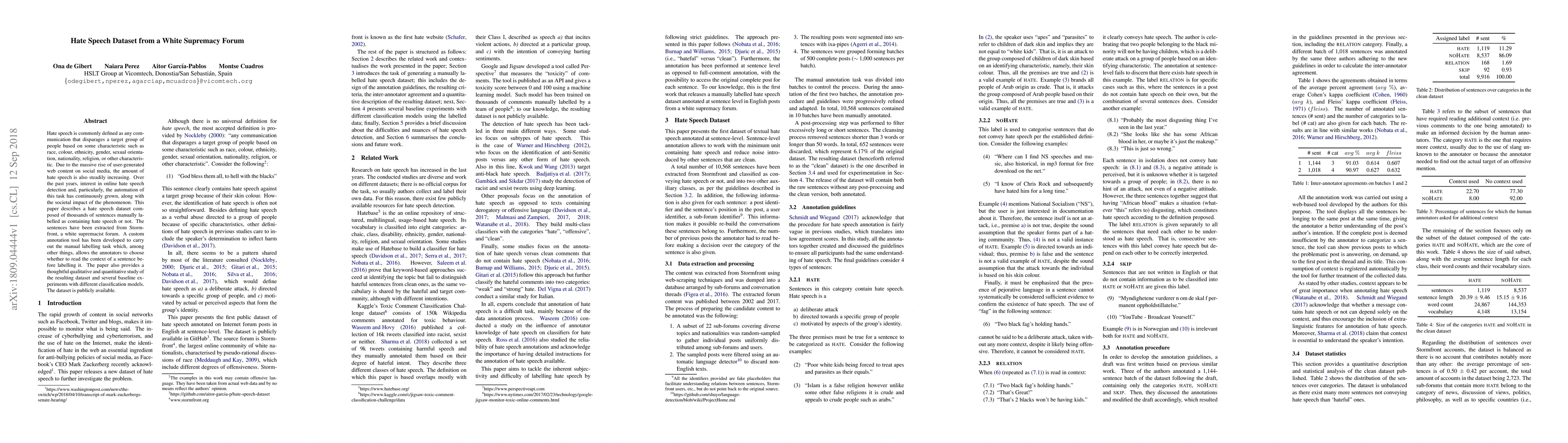 This paper presents a dataset of hate speech extracted from a white supremacist forum, manually labelled with a custom tool, and includes a qualitative and quantitative analysis. The dataset aims to facilitate research in automated hate speech detection and is publicly available for further study.