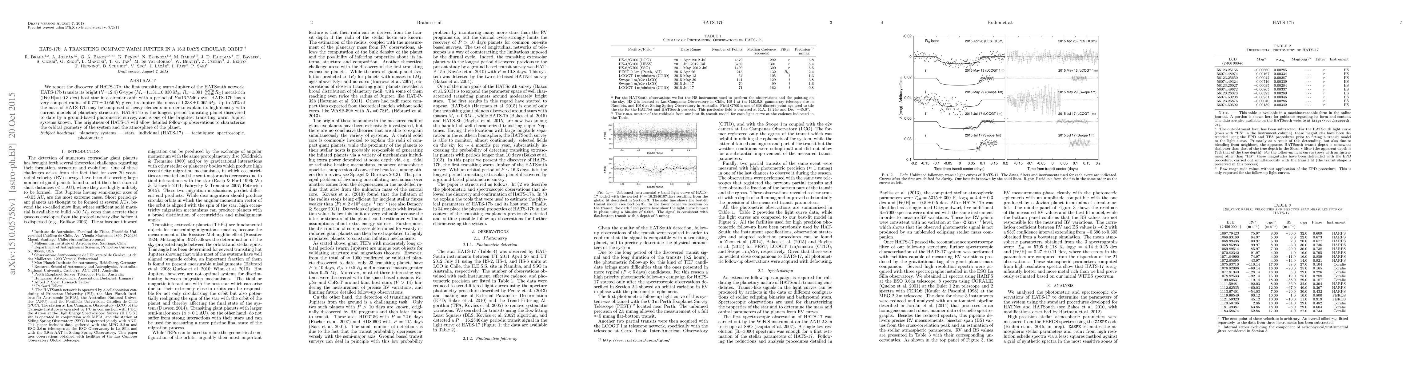 HATS-17b is a transiting warm Jupiter discovered by the HATSouth network, orbiting a bright G-type star in a 16.3-day circular orbit. It has a compact radius of 0.777 R$_J$ for its Jupiter-like mass, suggesting up to 50% of its mass may be heavy elements.