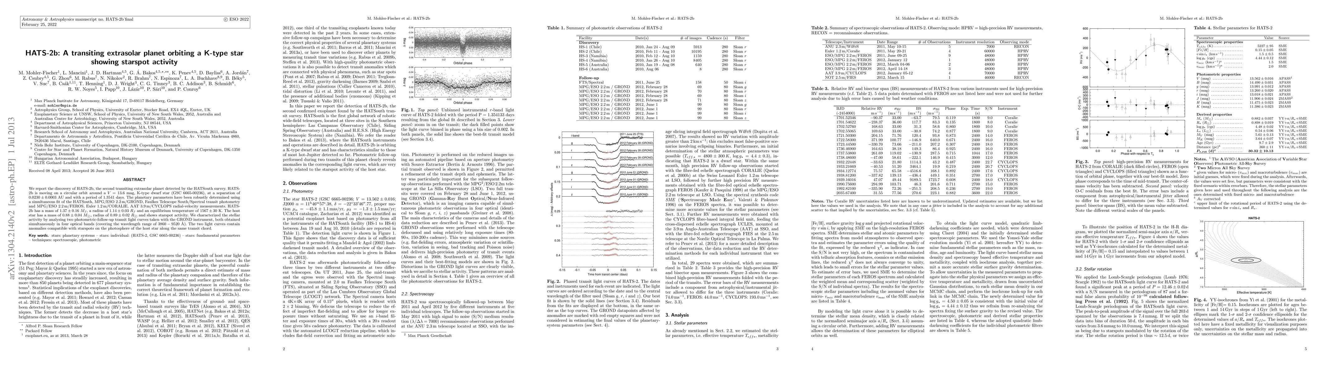 HATS-2b is a transiting exoplanet orbiting a K-type star, discovered by the HATSouth survey, with a mass and radius similar to Jupiter. The host star exhibits starspot activity, which was analyzed through follow-up transit observations.