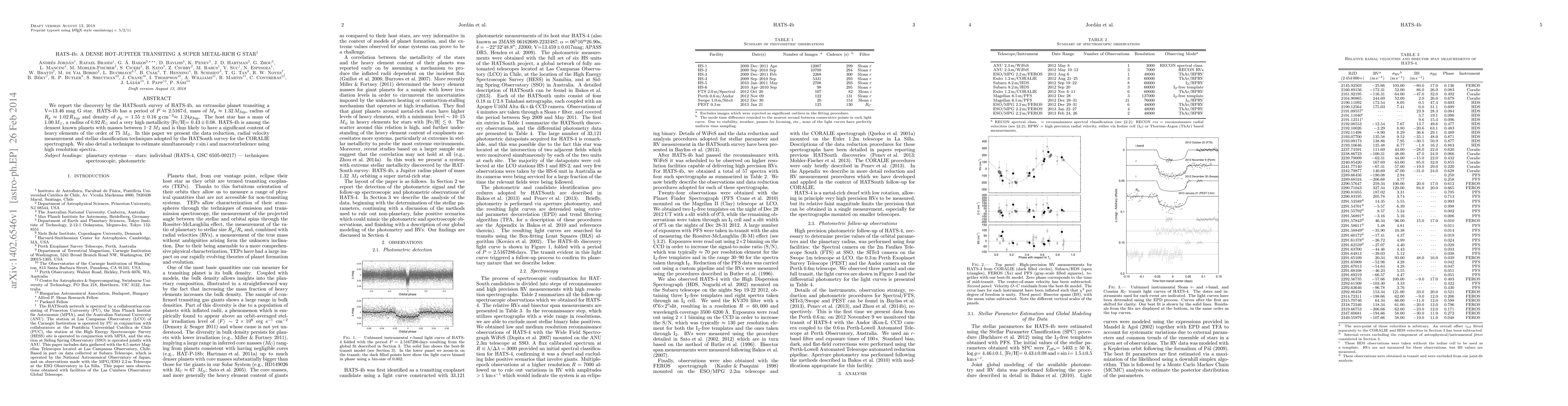 The HATS-4b planet is a dense hot-Jupiter transiting a super metal-rich G star, with a mass of 1.32 Mj and density of 1.55 g/cm^3, indicating significant heavy element content.