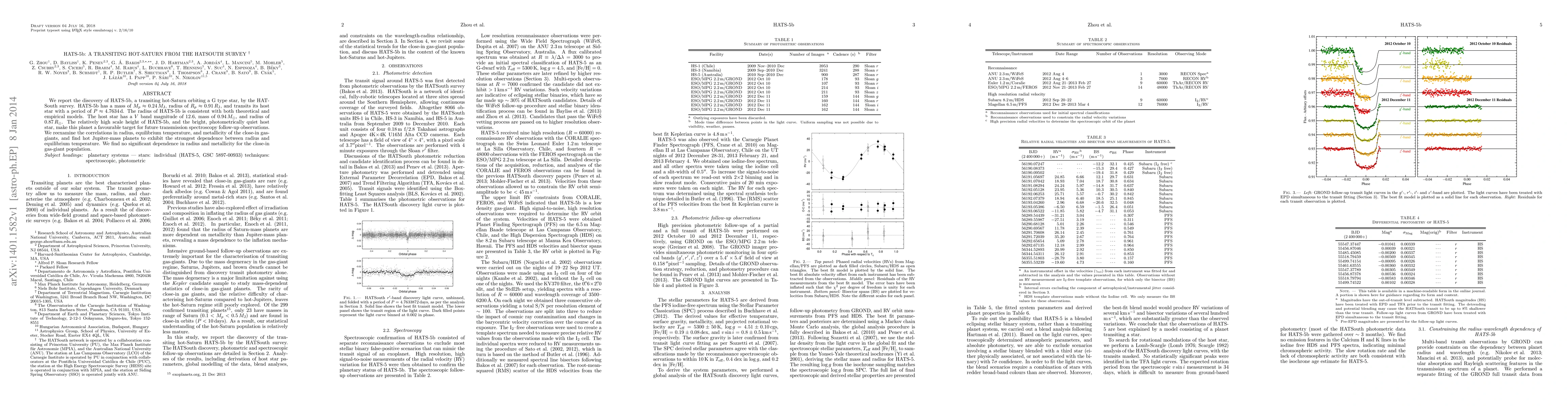 HATS-5b is a transiting hot-Saturn discovered by the HATSouth survey, with a radius consistent with models and a favorable target for transmission spectroscopy. The study also finds a strong correlation between radius and temperature for hot Jupiter-mass planets but no significant radius-metallicity correlation.
