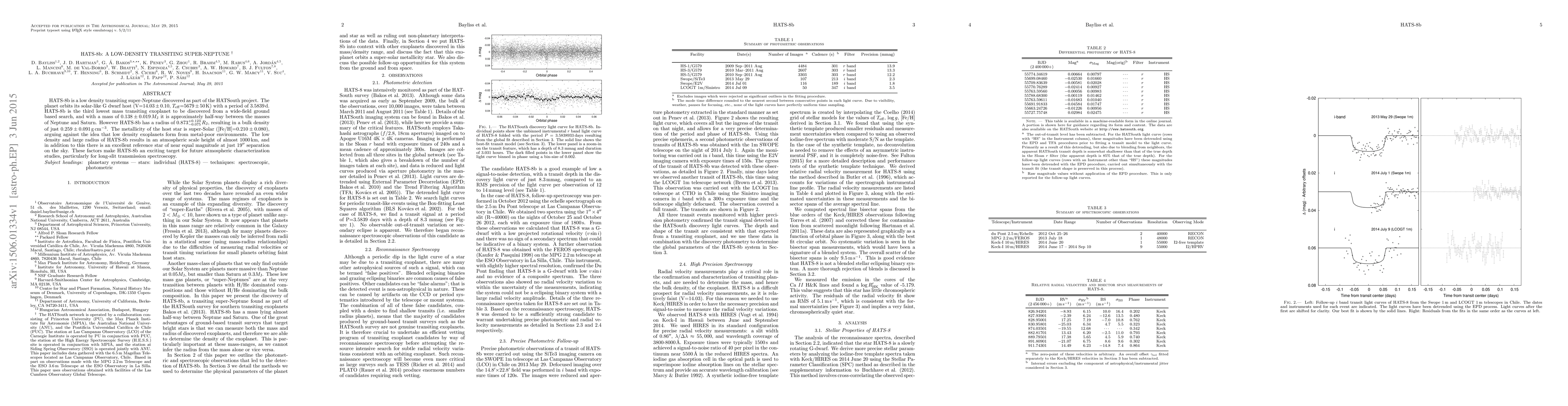 HATS-8b is a low-density transiting super-Neptune with a mass between Neptune and Saturn, orbiting a G dwarf star with a period of 3.5839 days. Its low density suggests a large radius and a potential for detailed atmospheric studies.