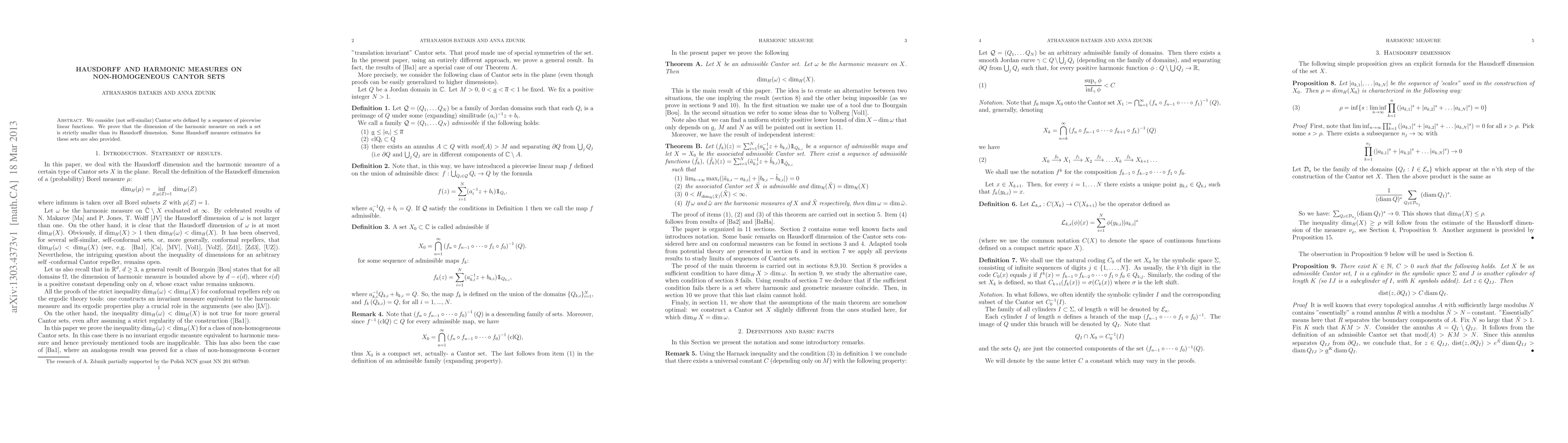 This paper investigates non-self-similar Cantor sets generated by piecewise linear functions, proving that their harmonic measure dimension is strictly less than their Hausdorff dimension, and provides associated Hausdorff measure estimates.
