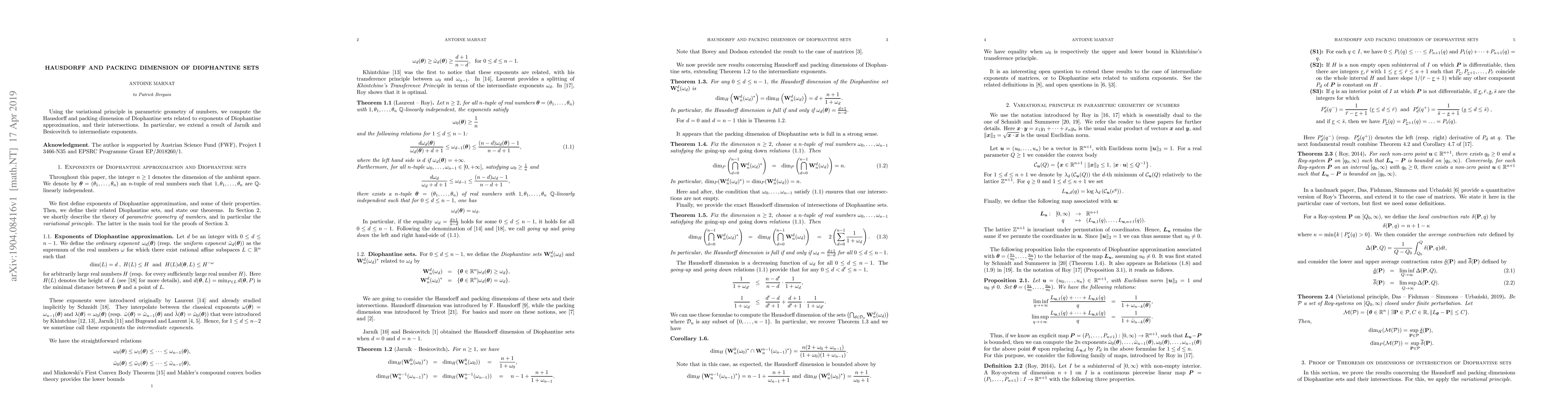 Summary: The paper calculates the Hausdorff and packing dimensions of Diophantine sets linked to Diophantine approximation exponents using the variational principle, extending previous results for intermediate exponents.