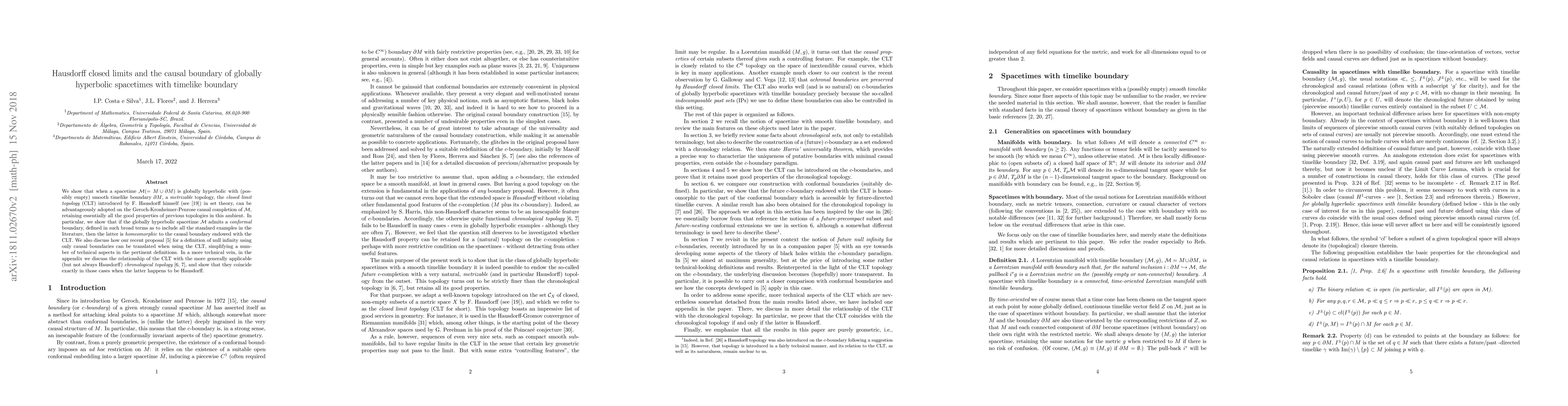 We show that when a spacetime $\mathcal{M}(=M \cup \partial M)$ is globally hyperbolic with (possibly empty) smooth timelike boundary $\partial M$, a metrizable topology, the closed limit topology (CLT) introduced by F. Hausdorff himself in the 1950's in set theory, can be advantageously adopted on the Geroch-Kronheimer-Penrose causal completion of M, retaining essentially all the good properties of previous topologies in this ambient. In particular, we show that if the globally hyperbolic spacetime $M$ admits a conformal boundary, defined in such broad terms as to include all the standard examples in the literature, then the latter is homeomorphic to the causal boundary endowed with the CLT. We also discuss how our recent proposal arXiv:1807.00152 for a definition of null infinity using only causal boundaries can be translated when using the CLT, simplifying a number of technical aspects in the pertinent definitions. In a more technical vein, in the appendix we discuss the relationship of the CLT with the more generally applicable (but not always Hausdorff) chronological topology, and show that they coincide exactly in those cases when the latter happens to be Hausdorff.