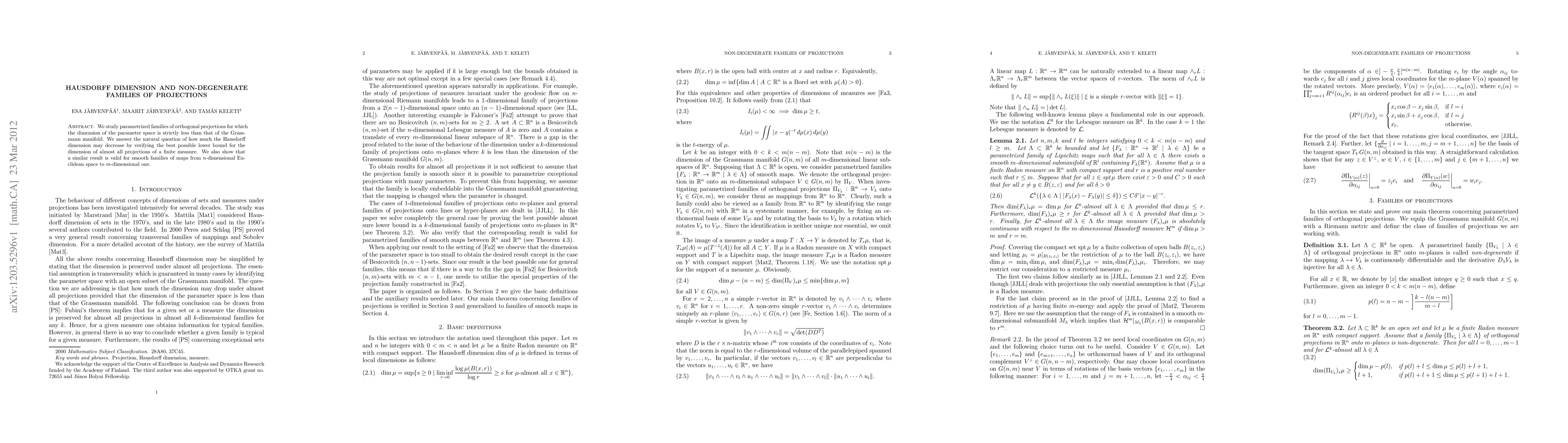 This research contributes to understanding how the Hausdorff dimension behaves under non-degenerate families of projections, which has implications in geometric measure theory and fractal geometry.