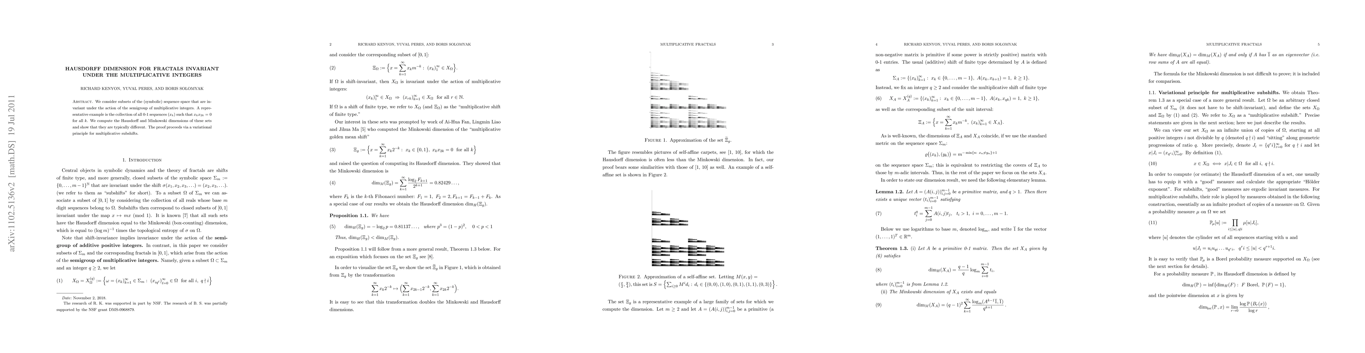 This paper investigates subsets of symbolic sequence space invariant under multiplicative integers, computing their Hausdorff and Minkowski dimensions and demonstrating that they often differ. The proof utilizes a variational principle for multiplicative subshifts.