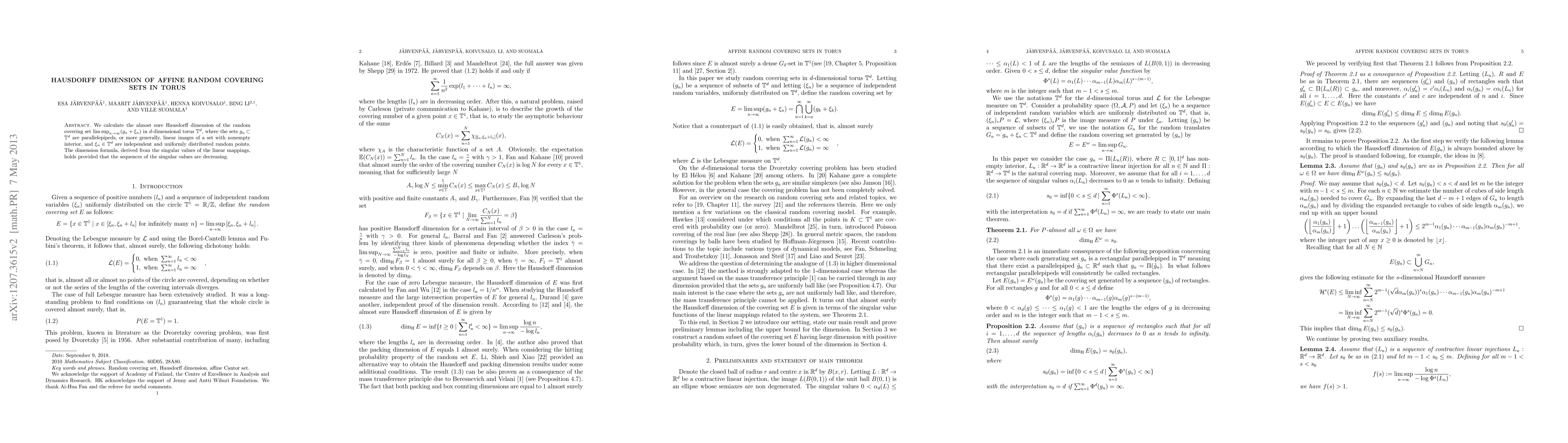 This research calculates the Hausdorff dimension of random covering sets in a torus, specifically for parallelepiped or more general linear image sets. The formula, derived from singular values of linear mappings, applies when these values decrease.