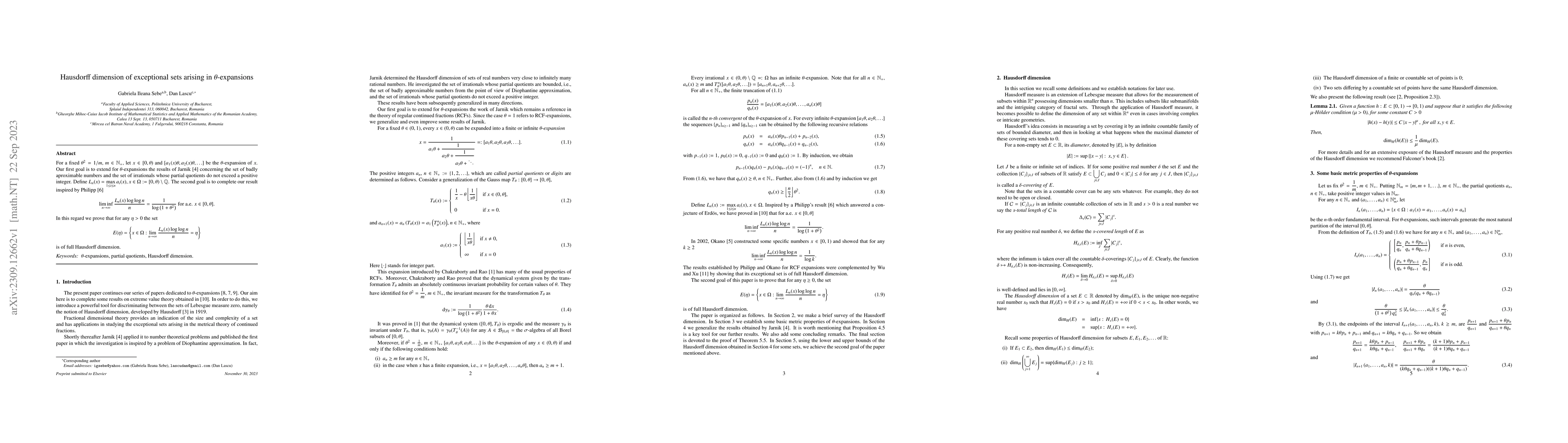This paper extends Jarnik's results on badly approximable numbers to $\theta$-expansions and proves that the set $E(\eta)$ of numbers with specific asymptotic behavior of their partial quotients has full Hausdorff dimension for any $\eta > 0$. The study focuses on irrational numbers within a specified interval and their exceptional set properties.