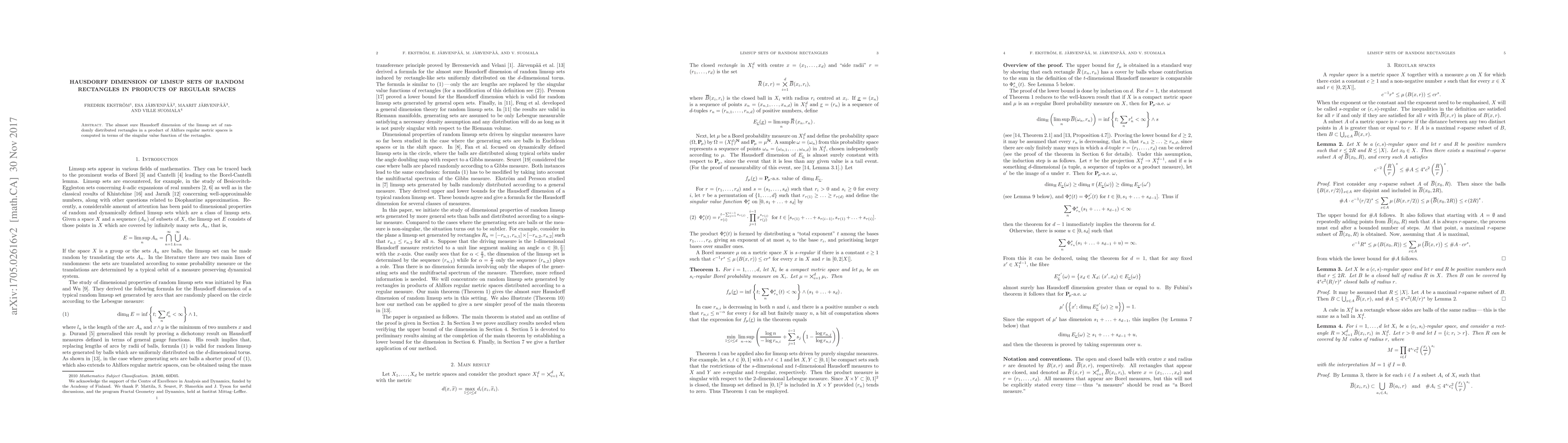 The almost sure Hausdorff dimension of the limsup set of randomly distributed rectangles in a product of Ahlfors regular metric spaces is computed in terms of the singular value function of the rectangles.
