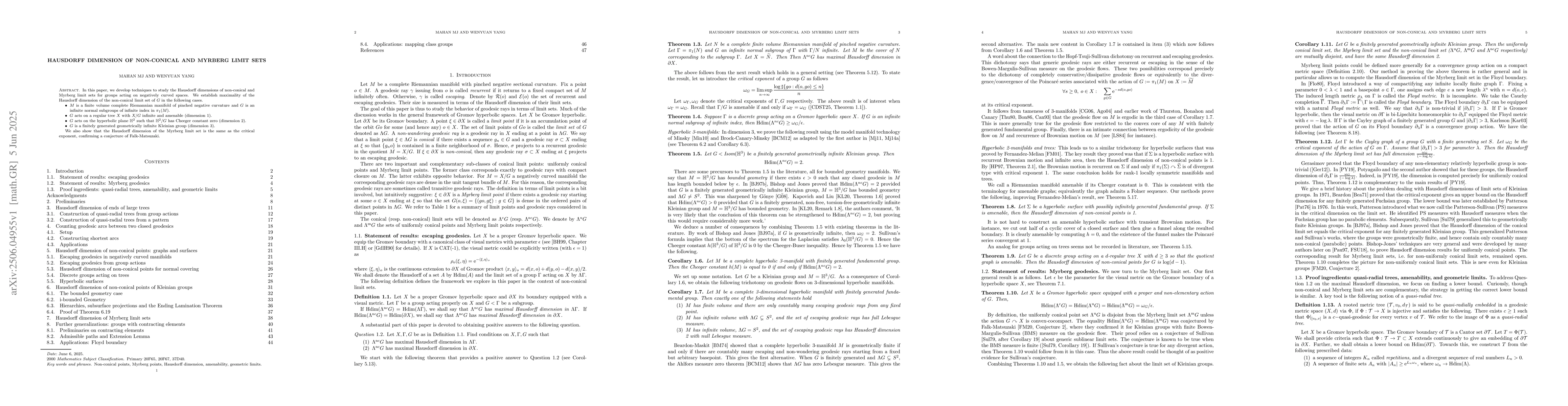 The research develops techniques to study Hausdorff dimensions of non-conical and Myrberg limit sets for groups acting on negatively curved spaces.