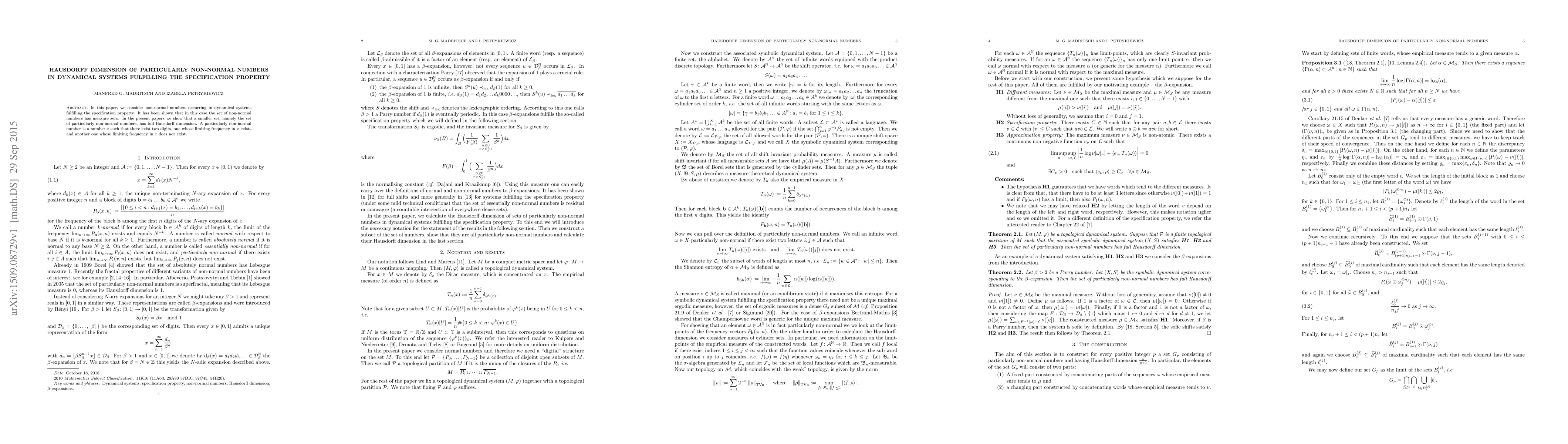 In this paper, we consider non-normal numbers occurring in dynamical systems fulfilling the specification property. It has been shown that in this case the set of non-normal numbers has measure zero. In the present papers we show that a smaller set, namely the set of particularly non-normal numbers, has full Hausdorff dimension. A particularly non-normal number is a number $x$ such that there exist two digits, one whose limiting frequency in $x$ exists and another one whose limiting frequency in $x$ does not exist.