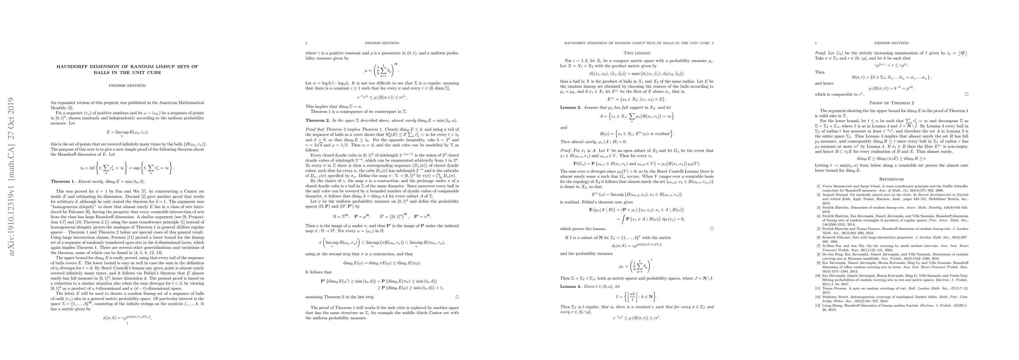 Researchers found that the Hausdorff dimension of points covered by a sequence of randomly distributed balls in the unit cube can be calculated using ball sizes. This new proof refines the existing formula for calculating this dimension.