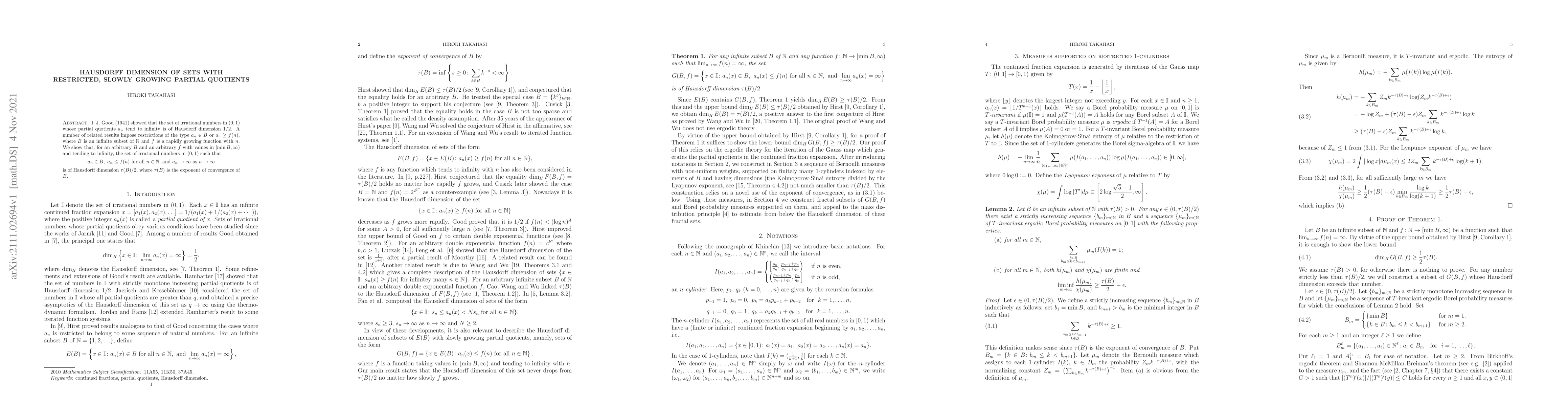 This paper finds that the set of irrational numbers in (0,1) with restricted partial quotients grows at a Hausdorff dimension of β(B)/2, where B is an infinite subset of λ N. The Hausdorff dimension depends on the exponent of convergence of B.