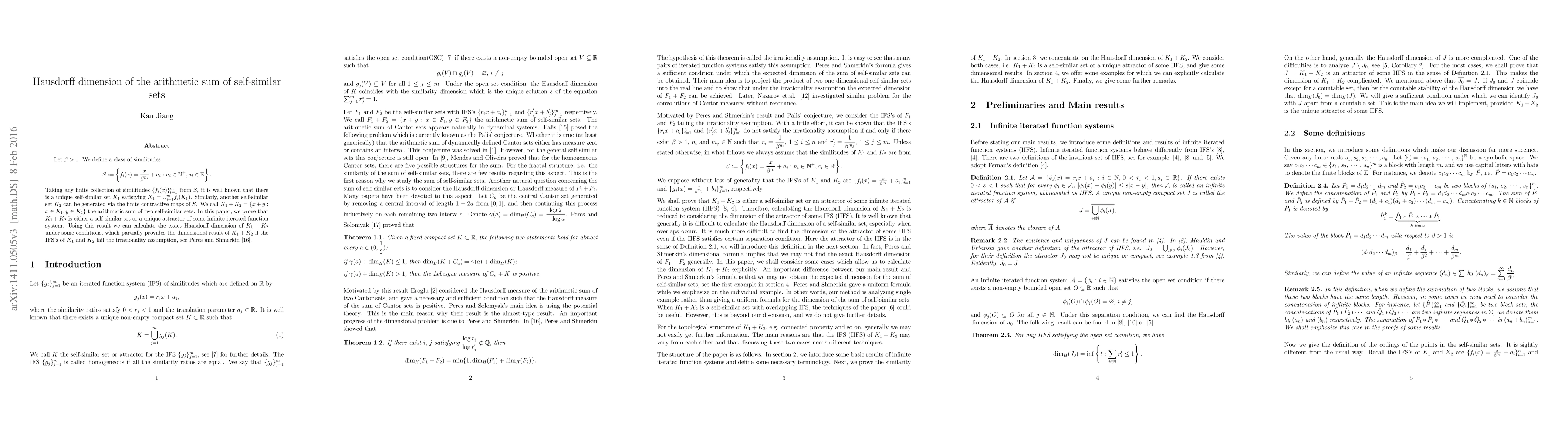 Let $\beta>1$. We define a class of similitudes \[S:=\left\{f_{i}(x)=\dfrac{x}{\beta^{n_i}}+a_i:n_i\in \mathbb{N}^{+}, a_i\in \mathbb{R}\right\}.\] Taking any finite similitudes $\{f_{i}(x)\}_{i=1}^{m} $ from $S$, it is well known that there is a unique self-similar set $K_1$ satisfying $K_1=\cup_{i=1}^{m} f_{i}(K_1)$. Similarly, another self-similar set $K_2$ can be generated via the finite contractive maps of $S$. We call $K_1+K_2=\{x+y:x\in K_1, y\in K_2\}$ the arithmetic sum of two self-similar sets. In this paper, we prove that $K_1+K_2$ is either a self-similar set or a unique attractor of some infinite iterated function system. Using this result we can then calculate the exact Hausdorff dimension of $K_1+K_2$ under some conditions, which partially provides the dimensional result of $K_1+K_2$ if the IFS's of $K_1$ and $K_2$ fail the irrational assumption, see Peres and Shmerkin \cite{PS}.