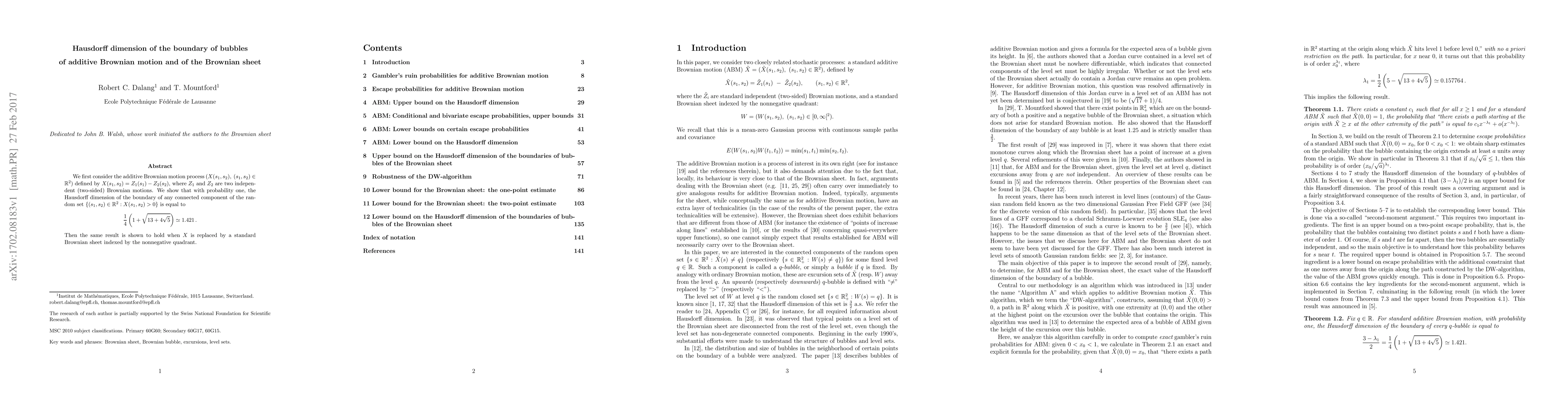 This paper investigates the Hausdorff dimension of the boundaries of bubbles formed by additive Brownian motion and Brownian sheet processes. It finds that the Hausdorff dimension of the boundary of any connected component of these random sets is approximately 1.421 with probability one.