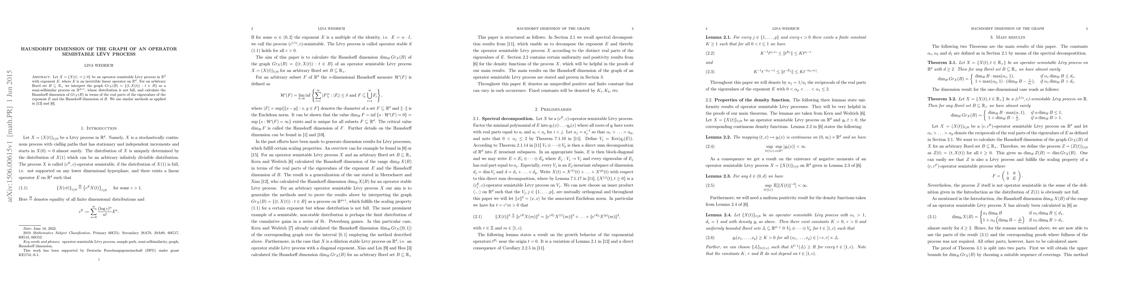 Let $X=\{X(t):t\geq0\}$ be an operator semistable L\'evy process in $\mathbb{R}^d$ with exponent $E$, where $E$ is an invertible linear operator on $\mathbb{R}^d$. For an arbitrary Borel set $B\subseteq\mathbb{R}_+$ we interpret the graph $Gr_X(B)=\{(t,X(t)):t\in B\}$ as a semi-selfsimilar process on $\mathbb{R}^{d+1}$, whose distribution is not full, and calculate the Hausdorff dimension of $Gr_X(B)$ in terms of the real parts of the eigenvalues of the exponent $E$ and the Hausdorff dimension of $B$.