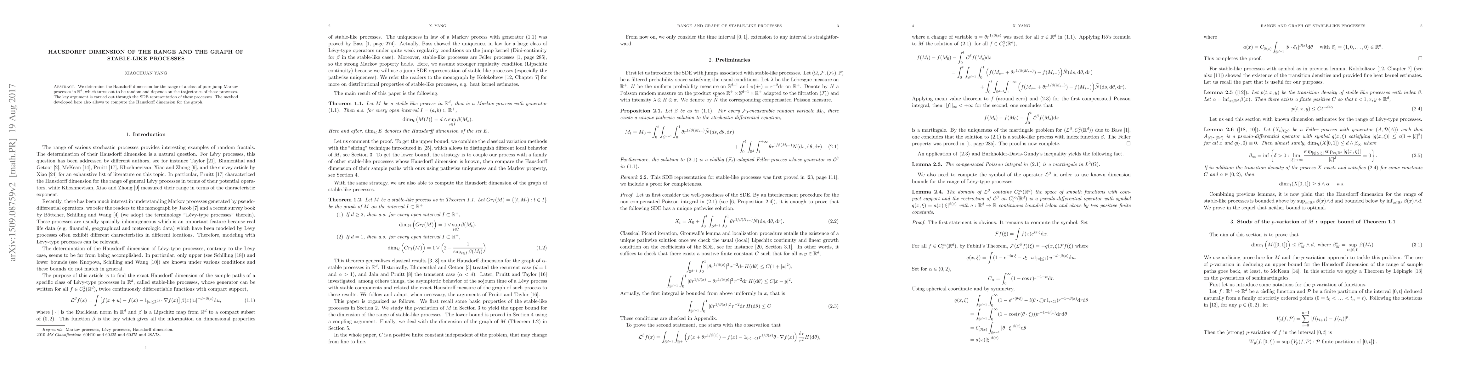 This research paper determines the Hausdorff dimension of the range for a specific class of random jump processes in multi-dimensional space, finding it to be variable based on process trajectories. The method uses SDE (Stochastic Differential Equation) representations, and the same approach calculates the Hausdorff dimension for the graph of these processes.