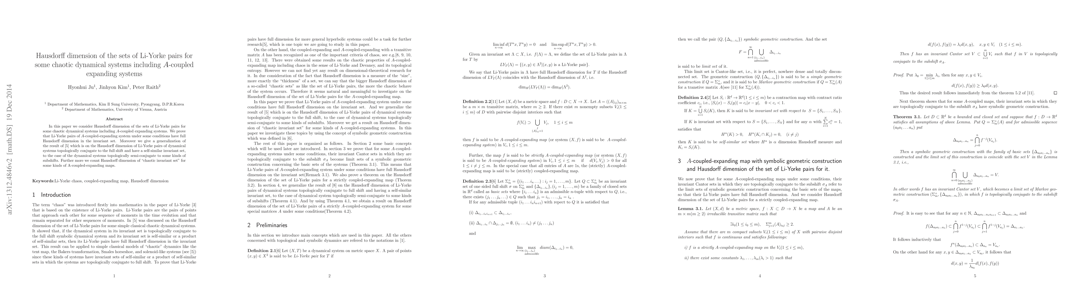 This paper investigates the Hausdorff dimension of sets containing Li-Yorke pairs in chaotic dynamical systems, particularly $A$-coupled expanding systems. It demonstrates that under certain conditions, these pairs exhibit full Hausdorff dimension on the invariant set, extending previous results to a broader class of dynamical systems.